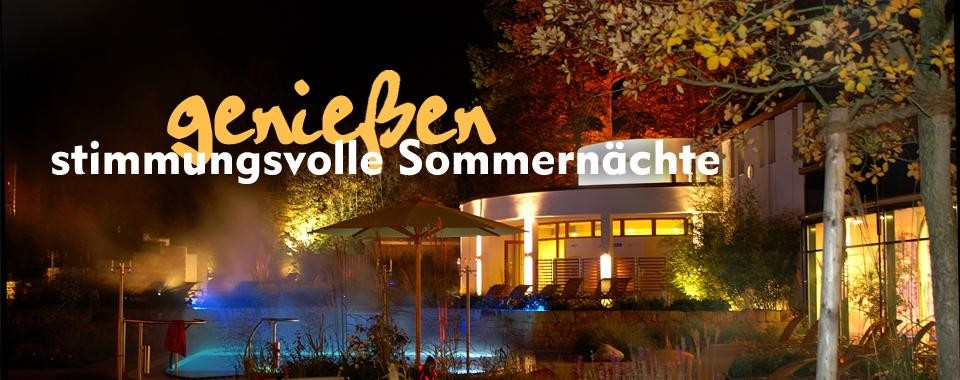 Jeden dritten Freitag im Monat genießen Sie in unseren Saunabereichen eine stimmungsvolle Sommer-Nacht mit einem abwechslungsreichen Programm von 20 Uhr bis Mitternacht.